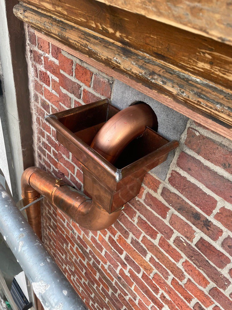 Dakgoten in zink of koper met bijhorende afvoeren en goothaken met een lange levensduur worden door onze specialisten vakkundig geplaatst met oog voor detail en afwerking. Zowel halfronde regenpijpen (mastgoot) als vierkante (bakgoot) enkel van A-kwaliteit.